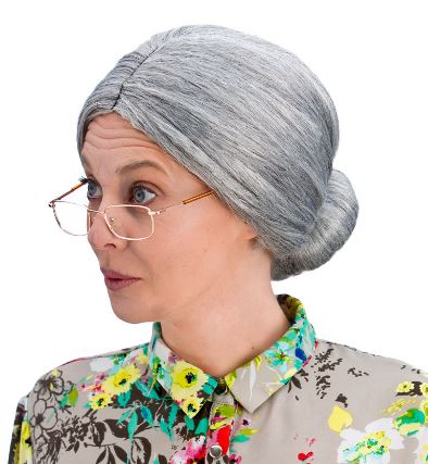 Complete your look with this grey Granny Bun wig. You can even unfasten the bun giving you a shoulder length wig!
