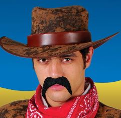 Complete your American Wild West Cowboy themed costume with this pack which contains a self adhesive black tash.