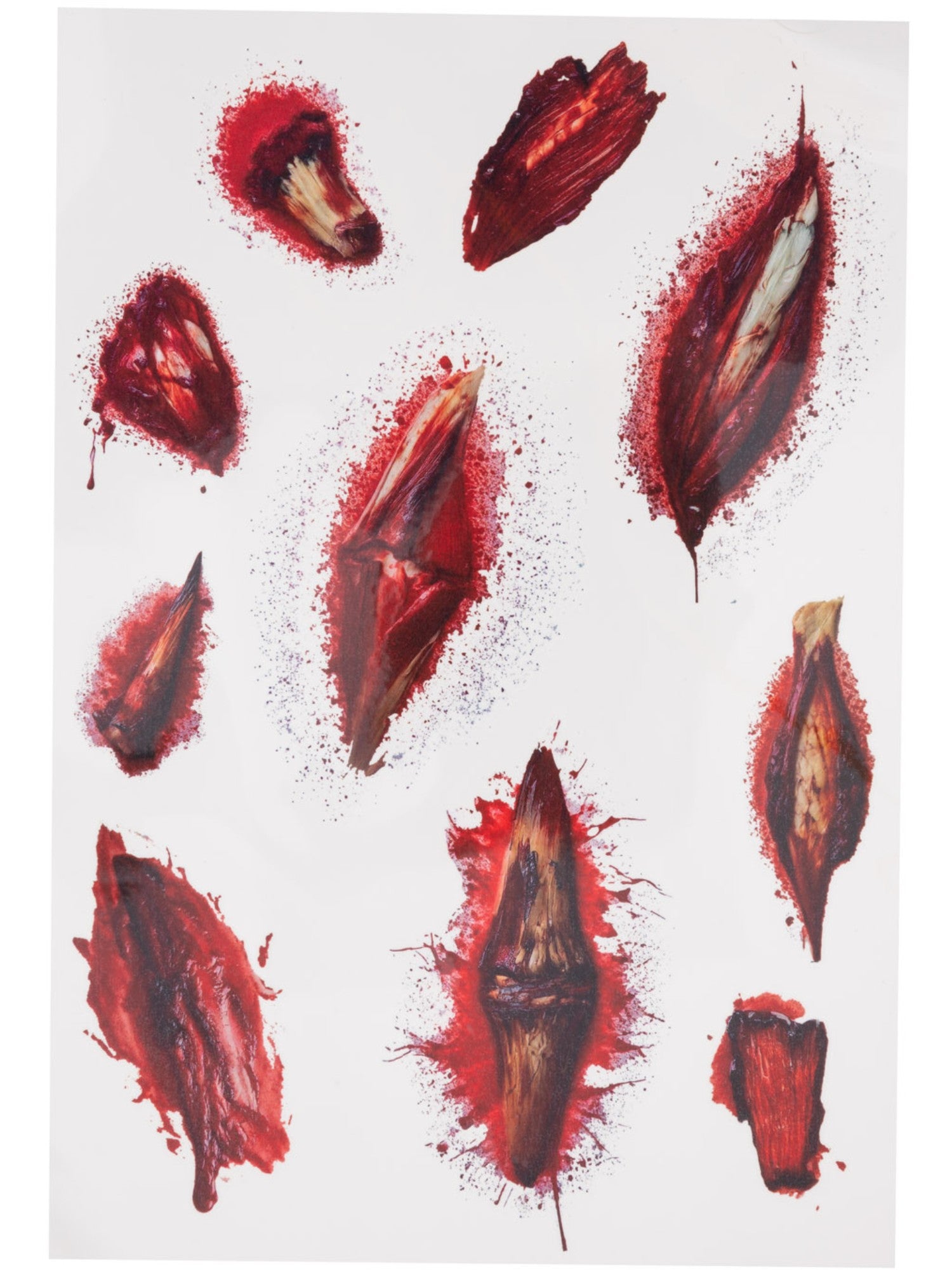 Complete your Halloween costume with these temporary tattoos transfers which are designed to make it look like you have open bloody wounds on your face or body.
