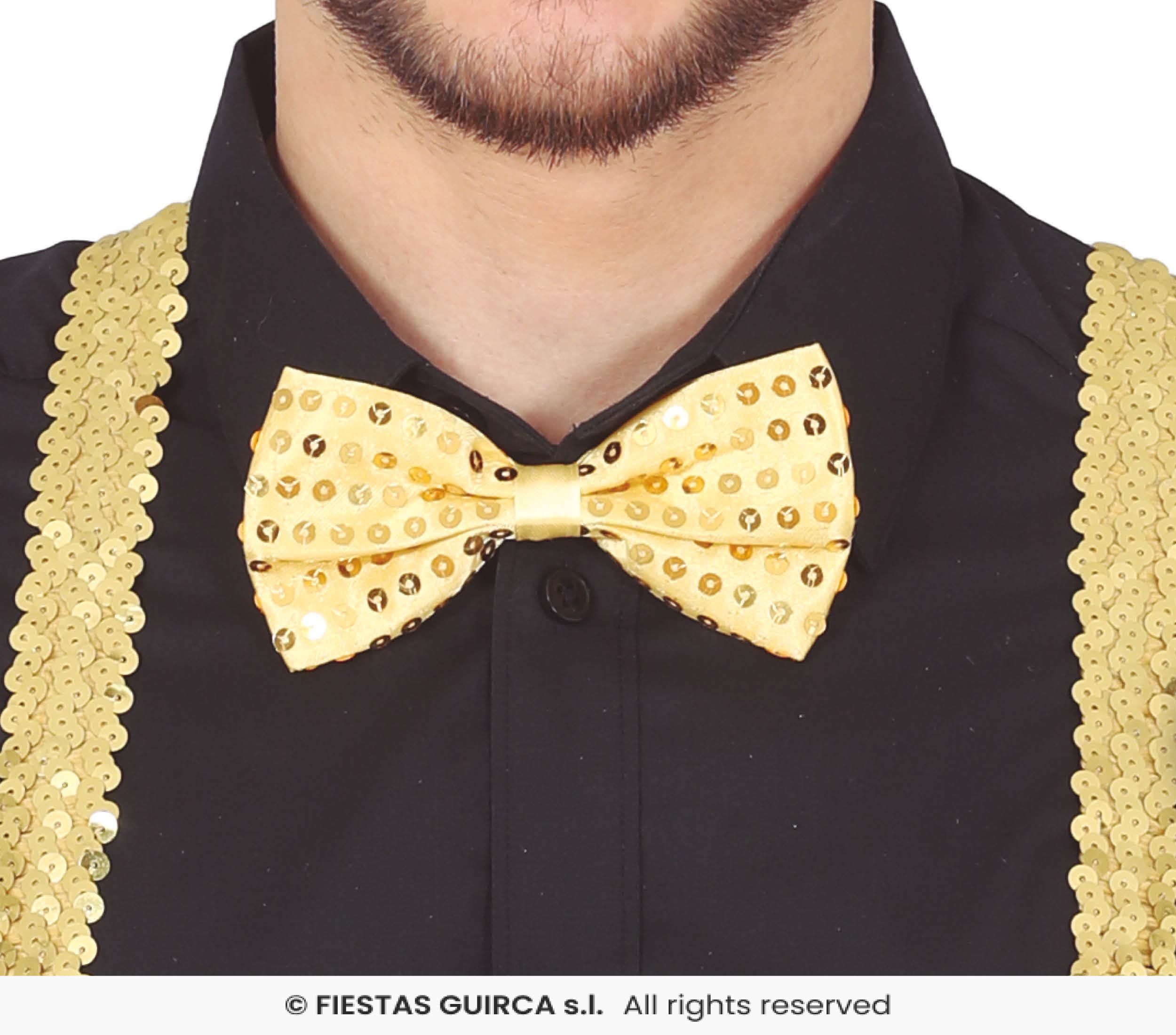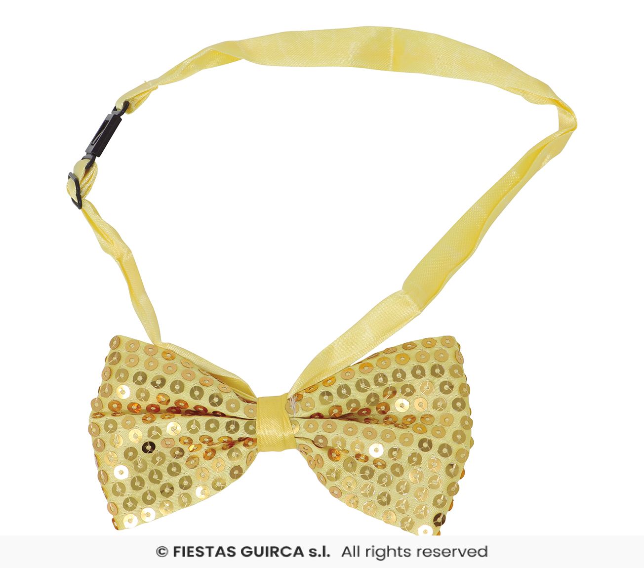 Complete your Clown or Rocky Horror costume with this gold coloured sequin bow tie.